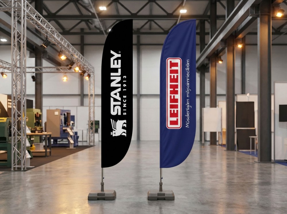 Piedāvājam pludmales reklāmas karogu izgatavošanu pēc individuāla pasūtījuma, izmantojot neierobežotu krāsu gammu. Materiāls ir izturīgs pret dažādiem laikapstākļiem. Karoga izmēri svārstās no 2,55 līdz 5,20 m. Reklāmas laukums ir atkarīgs no karoga lieluma un formas. Piedāvājam izvēlēties piecas karogu fomas. Ideāli piemērots sporta pasākumiem, izstādēm, vides reklāmai. Pludmales karogu druka tekstildrukā.