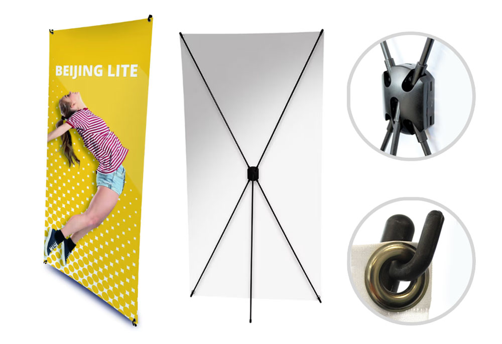 | X stends + plakātu druka uz lietā banera auduma: |